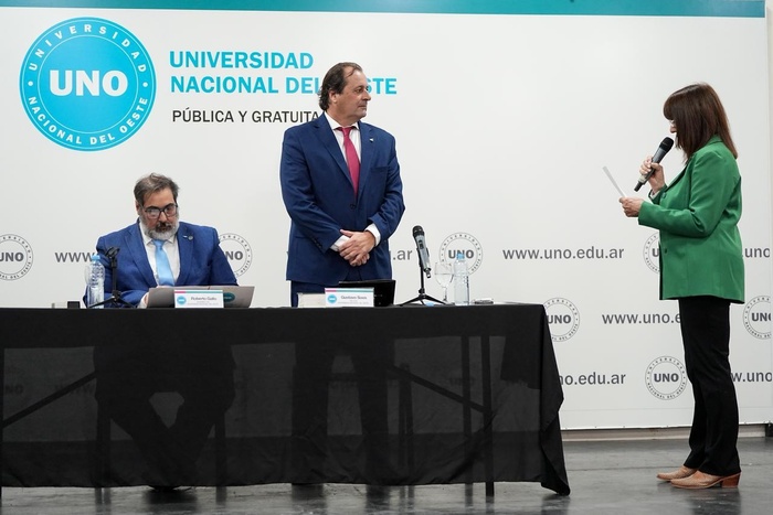 Con el auditorio del campus universitario colmado y en un marco de profunda significación institucional, el Dr. Gustavo Soos asumió como nuevo Rector de la Universidad Nacional del Oeste (UNO).